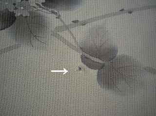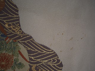 今日は帯のしみぬきをした画像をとってみました。なかなか洗っただけではおちなく薬品で抜きました。まず下は加工前になります。次に水洗いです。次に蒸気コテの熱で薬品をつかって抜きます。するとこのようにきれいになりました。きれいになるとうれしくなります。