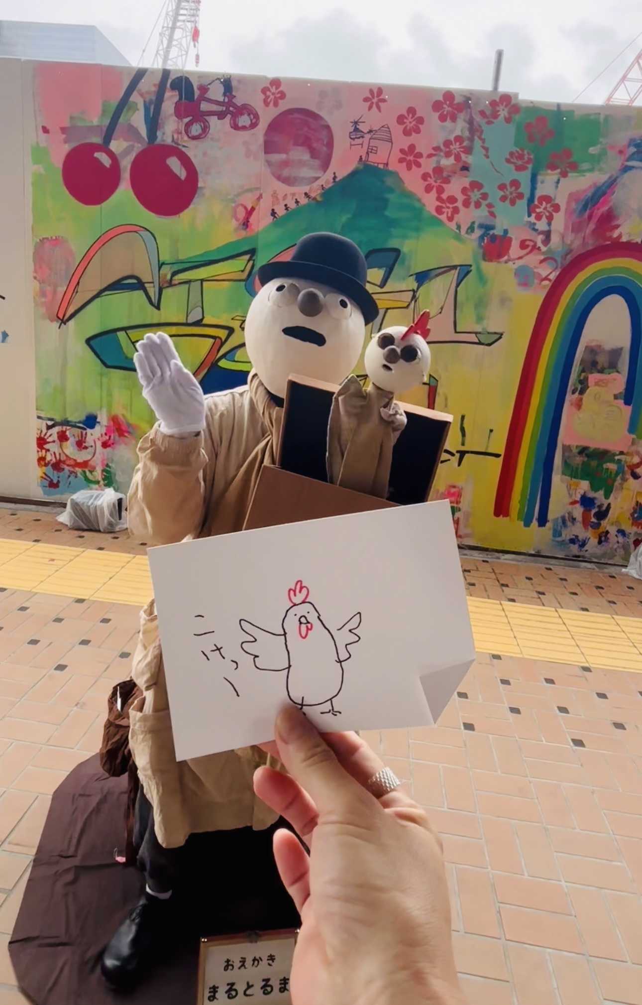 雨のためバスターミナルの一角で、お客は少なく、関係者多めだし、芸人も見てるし、という特殊な空間でした。