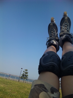 今日のアウトドアこんばんは(^-^*)/ぺりさま病院から暖かいお言葉ありがとうございます後ほど改めてご挨拶に今日は久々のインライン筋肉痛きてるきてるけどやっぱり滑るのサイコーえいっ疲れて芝生にねっころがれる しあわせはじめの写真はうがぁ~~~っとねっころがった そのまんまの右それから気取って足をそろえて海なんかも遠くに入れようとしたのが左どっちにしろぱっとしないので もっと飛行機も入れてとりなおそうかと思ったらデンチギレになったそんな 日でした今日はやばいのよっよろしくね~~~にほんブログ村ブログトップはこちらですはぐぴ~~の 萌えますわ♪