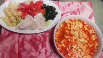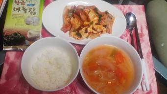 今日の朝ご飯に娘がダイエット野菜スープを作ってくれた野菜の甘味が本当に美味しいこれで痩せるなら最高~さすがに彼氏と同棲して1年半以上もたつのだから料理の腕もあがったよね~実にすばらしい・・・・・・・・・・・・切り取り・・・・・・・・・・・・・・・・・・・・・・・朝ご飯のメニューライス少し韓国のりのにんにく味たまねぎ・にら・豚肉・厚揚げいため