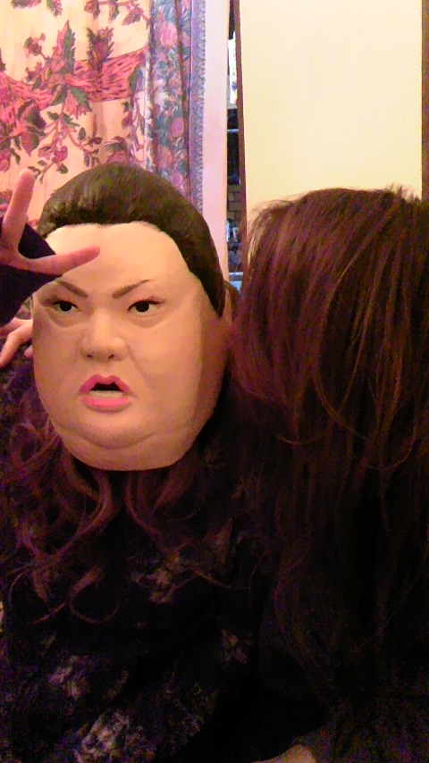 娘と少し前にマツコデラックスのかぶりものでお遊びあまりにもくだらなすぎてちょび(娘の彼氏)に2人こっちむいて~言われパシャリマツコが娘右が私にほんブログ村