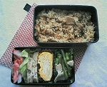食事はきちんと摂りたいのでこんな日は必ずお弁当を作ります手前のお弁当箱の左から、かにかまのナムル。ごま油少々で和えて下には戻したわかめがかくれています。食べるときに混ぜ合わせます。次に自家製鶏ハムを切っただけ。そうそう作り方ご紹介しなくちゃ真ん中にドッカーンと居座っているのがデカマヨたまこれは定番中の定番で、お弁当には必ず作ります。砂糖と塩少々で味付けした卵液に、マヨネーズ・鶏ガラスープの素・牛乳を加えてフライパンで焼きます。冷めてもふわふわで、大根おろしを添えて夕食の一品にだってグッド。一番右はつるむらさきと豚肉のソテー。ほうれん草などの青菜に比べると安価だし、栄養価も高いので最近はもっぱらこれかニラばかり・・・向こう側はシーチキンとなめたけの炊き込みご飯。こどもたちのお弁当にはこれにサーモンのソテーがプラス。だいたい我が家はこんな感じのお弁当です