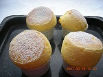 5,茶こしで粉糖をふり、160~180℃のオーブン中段で10~12分焼く。*高温で焼くとしぼみやすいので注意。じっくり火を通すと高さがでます。