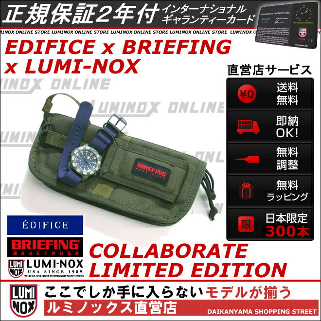 Luminox×EDIFICE×BRIEFINGV2 LIMITED EDITION※クリックで拡大 本日ご紹介のアイテムは、警察特殊部隊SWATや特殊戦闘機パイロットから信頼される特殊時計ブランド Luminox[ルミノックス] とベイクルーズが運営する人気セレクトショップ EDIFICE[エディフィス] 、そして”ミリタリー風”ではない、“リアル・ミリタリズム”ラッゲージブランド BRIEFING[ブリーフィング] のトリプルコラボレーションで生まれたトラベルケースウォッチセットの限定モデル 『 Luminox×EDIFICE×BRIEFING V2 LIMITED EDITION 』 です。このトリプルコラボは今回で第二弾目。第一弾目は2008年に企画され、当時大変な反響を呼び、用意されていた限定200セットは即完売となる人気アイテムでした。今回登場した 『 Luminox×EDIFICE×BRIEFING V2 LIMITED EDITION 』 の企画コンセプトは、「大人のトラベル」。まず、ルミノックスは、人気定番シリーズ「3050カラーマークシリーズ」をベースに文字盤とベルトはエディフィスのブランドカラーであるネイビー色。ルミノックス本体カラーはカーキ色。ベルトはオリジナルナイロン仕様ということで、共にルミノックス初とのこと。※クリックで拡大尾錠はPVD加工され、中央にルミノックス、右側にエディフィス、左側にブリーフィング のロゴマークが刻印されています。そして、トラベルケースは、ブリーフィングが今回のために専用で設計。ブリーフィングお約束の防弾チョッキやガンケースにも使われる最も耐摩耗性能が高いといわれる”#1050デニールのバリスティックナイロン”をメイン素材に、外側は定番カラーであるモスカラー、内側は今回初採用のネービーカラー(※#420デニールのバリスティックナイロン)仕様となっています。内装は、カードポケットが4つ、オープンポケットが6つ、ジッパーポケットが2、ペンホルダーを備えており、パスポートや紙幣、カードなどを一式収納しておくことが出来ます。※クリックで拡大また、ルミノックス本体をこのトラベルケースに装着できるギミックも面白く、この組み合わせは、まさにリアルミリタリー仕様の本格ギアに仕上がっています。今回の限定台数は300台。発売は12月10日。取り扱いショップの 代官山お買い物通り さんは、ルミノックス直営店ということで日本正規保証2年付。直営店のポイントカードも同梱されています。こりゃ非常に魅力的。渋いね~ほしいねぇ♪アイテム紹介 ~ 代官山お買い物通り ~Luminox×EDIFICE×BRIEFING V2 LIMITED EDITION人気の『カラーマークシリーズ』をベースにエディフィスのブランドカラーであるカーキとネイビーをケースとナイロンストラップに使用したルミノックスとしては新鮮な配色。さらに今回のコラボのために一からデザイン、製作されたブリーフィングのトラベルウォレット。これらがセットになったまさに最強のアイテムです!!□TRAVEL WALLET SPEC■サイズ: W11/H24.5/D4(cm)■重量:190g■素材:表地:ナイロン(1050 デニール・バリスティックナイロン)裏地:ナイロン(420デニール・バッククロスナイロン)■内装:カードポケット×4、オープンポケット×6、ジッパーポケット2、ペンホルダー、ケース袋■ジッパーによる開閉、時計収納可■MADE IN USA □Watch■ケース幅 47mm■ケース厚 14mm ■ベゼル:トリムリング カーボンファイバー逆回転防止機能・トレーサードット■ベルト:ナイロンストラップ(22mm限定ストラップ)■バックル:ロゴ付き尾錠■ムーブメント:スイスクォーツ Ronda 515■カレンダー機能:EOL(END OF LIFE)機能(電池切れ予告)付き / 月差+-20秒以内 ■ケース/ベゼル:カーボンファイバー カーボンファイバー ■ガラス(風防):ミネラルガラス ■防水:200m(日常生活強化防水) ■バッテリー:約4年(製造より) ■重量:54g(ベルト含む) ■腕周りのサイズ:約15cm~約22cm 【日本正規保証2年付】【限定】ルミノックス×エディフィス×ブリーフィングLUMINOX×EDIFICE×BRIEFING/カラーマークシリーズ[コラボ][限定][Limited][ステッカー付][T25表記][ルミノックス直営店][T25表記][ミリタリーウォッチ][ミルスペック]shop:代官山お買い物通りBRIEFING[ブリーフィング]のバッグは米軍NAVY、陸海軍特殊部隊SEAL、SWATなどのプロフェッショナルチームの装備品を製造する「EAGLE INDUSTRIES社」の工場で作られるハードギアバックです。「DFS基準」即ちDurability(耐久性)・Functional(機能性)・Comfortable(快適性)の3つの基準を満たす為に米陸軍規格(通称ミルスペック)に準拠したパーツを使用して製造されています。主素材は防弾チョッキやガンケースにも使われる最も耐摩耗性能が高いといわれる“#1050デニールのバリスティックナイロン”を使い、ファスナー、ウェビングベルト、金属パーツなど全てミルスペックにクリアしたものを採用して製造されており、"本物仕様"の"ミリタリズム・ラッゲージ"といわれています。当ブログ『こだわる男の「モノ&ファッション」』では、そんな人気の BRIEFING[ブリーフィング]を簡単に探すことができます。こだわる男の「モノ&ファッション」BRIEFING[ブリーフィング]を探すならコチラから