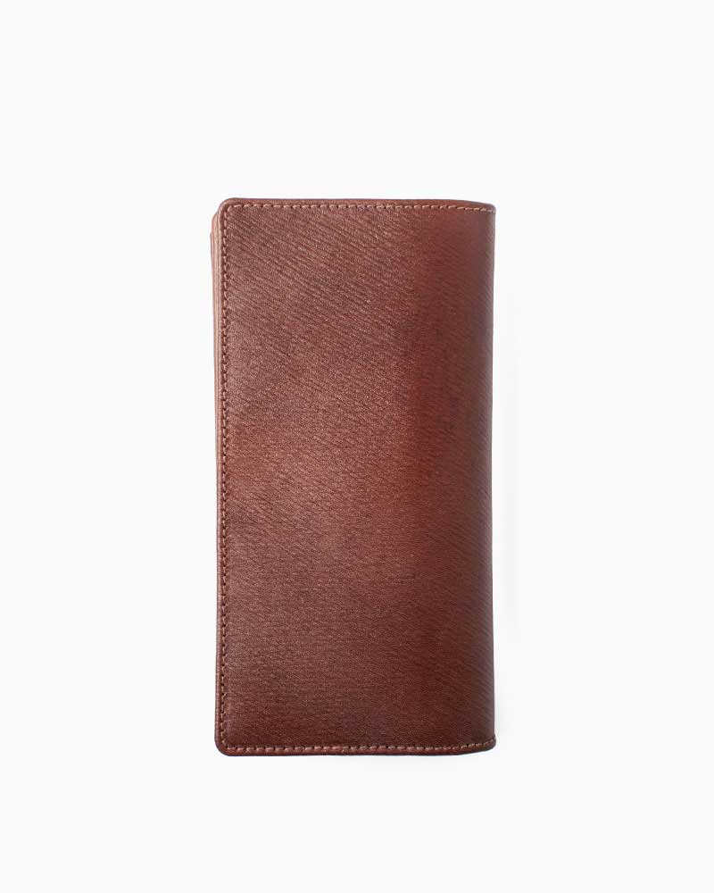 縦に並んだカード入れや、ジッパー付きのコインケースを備えるなど、シンプルながらも大容量の収納力を持つ、使い勝手の良い長財布です。