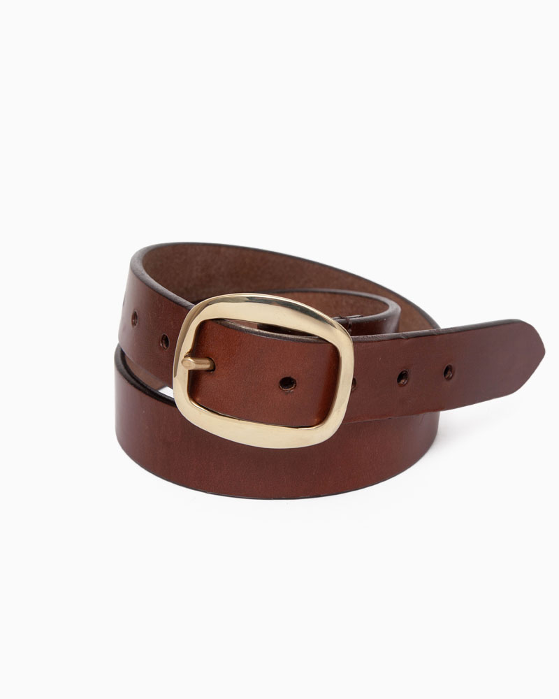 英国産「ヴィンテージブライドルレザー」に存在感のあるオーバルバックルを組み合わせた雰囲気抜群なカジュアルベルトです。充分に厚みのある一枚革を贅沢に使用し、パンツを選ばないスタンダードな30mm幅に仕上げていますが、重厚な真鍮製のオーバル(楕円型)バックルやウエストサイズの変化にも幅広く対応できる9穴のベルトホールなどインパクトのあるディテールを備えています。本来、ヴィンテージブライドルレザーは馬具やハーネスなどに実際に使用されている革で、コシが強く引っ張り強度に優れています。ベルトの素材としてはまさに理想的な革とも言えます。堅牢な革は使うほどに自分の腰回りに馴染み、革の風合いは味わい深くエイジングいたします。また、真鍮製バックルも経年変化によって得も言われぬ味わい深さが表れてきます。