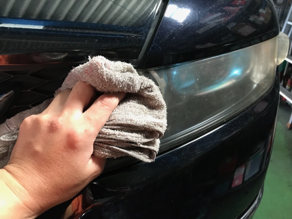 まず ヘッドライトをよく洗い 綺麗に吹き上げます