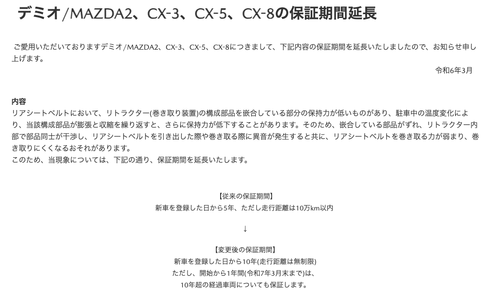 このリコール(サービスキャンペーン)が出たのが令和6年3月