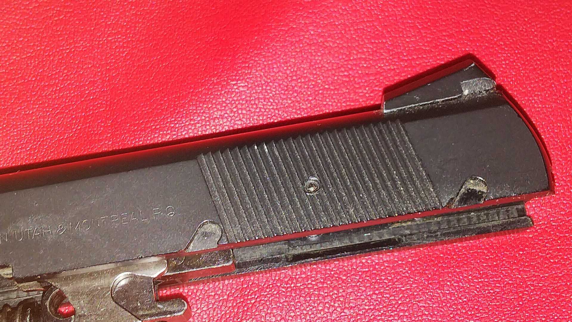 調子に乗って手を加えたマルシンのハイパワー(モデルガン)と・・・。ガスガンで製品化したモデルをモデルガンとしても製品化してくれるタナカあたりからハイパワーの決定版が出れば良いのですが、ナカタ時代から受け継がれているマルシンのハイパワーもポイントを絞って加工すれば結構良い感じになります。が、残念ながら最近のハイパワーはシアレバーによってスライドが持ちあげられる力が加わる関係かスライドのレール部分が割れるといった弱点がある為、レール部分をざっくり削っている為に別な意味で耐久性が落ちてしまっているのが残念なんですよねぇ・・・。