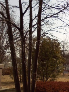 写真はきょうの「木」ではなく1週間ほど前に撮ったもの。 そろそろ芽吹いてもいいのだが、まだ寒い。 9時になってからようやく起きた。 かみさんは遅番だからゆっくり寝ていられるのだが、熟睡ぶりが尋常でない。 具合がわるいようだと思い寝かせておいた。 オスカー・ピーターソンとThe Singers UnlimitedのCD『IN TUNE』を聴く。 ふいに『Once Upon A Summertime』が聴きたくなったのだ。 別のアルバムでこの曲を聴いたのが6年か7年前。 「The Singers Unlimited」というグループがすっかり気に入り、それで『IN TUNE』のCDを買ったのだった。 購入に際して、結果的に背中を押してくれることとなったのが、高井戸の仕事場で知り合った摂津さんだった。 あるとき、ぼくが「ボニー・ハーマン(Bonnie HERMAN)がすばらしい。ヒマがあったら『Once Upon A Summertime』を聴いてみて」と話したのだが、翌日にはもう「聞きました、いいですね」と報告されたのだ。 アルバム名を聞いたら『IN TUNE』だという。 かねてから欲しいCDだったので、その晩アマゾンに注文した。 ボニー・ハーマンの歌いかたはもの静かな声で物語を語るようで、ときに問いかけるようで、目の前で自らの胸の内を見つめる姿が見えるようで、聴き手を包み込む。 きょうも、聴き始めるなりすっかり取り込まれ、わけもなくうれしく、春のそらを見上げるような浮揚感を覚える。 夕方のテレビニュースに、大阪市立桜宮高校でバスケットボール部元顧問・小村基教諭が出てきた。 同部主将の自殺事件以来、メディアに出るのは初めてではないかなと思いながら見た。 弁解じみたことをいろいろいっていたが、何をくだくだいっているのだとしか思わない。 強い立場の者が弱い立場の側であることがはっきりしている生徒を10回も20回も引っぱたくというのはまともなオトナがやることではないという思いは消えないのだ。 夕食に鮭を焼く。 この間アルプスで買ってきたチリ産の鮭だが、思ったよりずっとうまい。 ま、小さなことではあるが、うれしい見立てちがいであった。 食後、映画『ノッティングヒルの恋人』を見た。 かみさんがあした休みなので時間を気にせず見られる。 ジュリア・ロバーツがこんなにいい女優だったと初めて知った思い。 主な舞台が本屋という設定も気に入った。