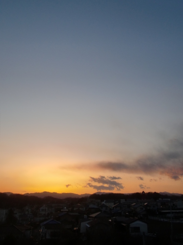 5時半に起きる。 そらを見ていると、例によって高井戸にかよっていたころを思い出す。 早朝のこの時間、かなり明るくなったとはいえまだまだ暗い朝だ。 そういった季節感も含め、あの3年間はよく早起きを続けていたものだと我ながら感心する。 きょうも早番のかみさんが起きてきた。 コーヒーを淹れ、ゆうべいっていたように弁当用の親子丼を作り始める。 カーテンを開けた。 いい天気だ。 富士山がきれいだろうと想像するが寒いから見に出ていくことまではしない。