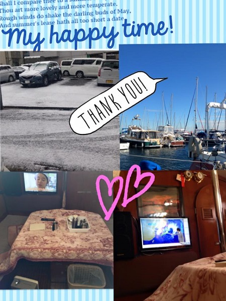 昨日の雪で早々ホッシーは昨日昼前に今夜は船に行くのギブってメールきた(笑)なので私も今朝きた(爆笑)スタッドレス試走したら完璧だった(^^)今日は晴天だけど北風ビュンビュン・・・寒いので船コタツにして船内でマッタリウトウト(-_-)zzz