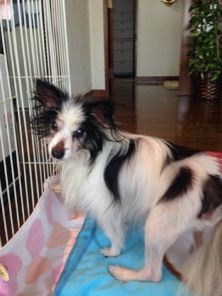 18歳誕生日ありがとう(^^)我が家の癒しデベちゃん(パピヨン男子)本日目出度く誕生日。目は見えなく耳も聞こえず唯一の鼻も効かなくなり記憶の中で動いているけど去年暮から2度立ち上がれなくなったけど気力と医力で何とか持ちこたえ歩いています。こんなだけどデベちゃん見てるとこちらが勇気付けらます。ありがとうデベちゃん(^^)