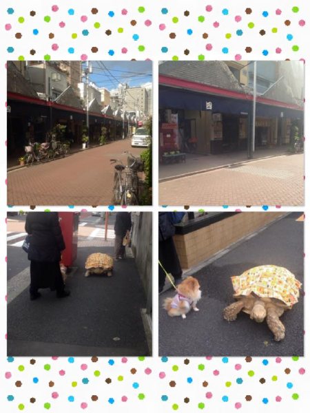 仕事で月島に行ったらデカ亀に遭遇‼黄金色してたから触らせてもらった(^^)御利益に授かって「亀持ち」・・・違う違う「金持ち」になるぞ〜(笑)