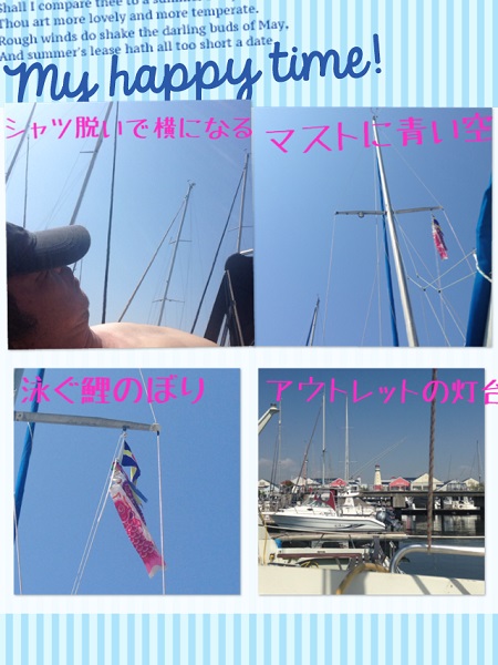 4/26(日)朝から思い切り晴天だったので上半身裸になって8時から日向ぼっこ。。匠の星野さんから前夜に明日ゲスト来て船出すから乗れとの指示を頂き??(笑)10時に出航。。ゲスト、乗り組みの全員が海運関係者・・・・大きな外航船には馴染みがあるけどヨットは初乗船。。昼頃までは風が弱く船上で早めの昼食・・・・昼頃には風が出てきて重いスパンコールにはもってこいの風。帆走・帆走で楽しんで帰港し皆さんは食事の続きとドリンキングタイムに。私は余所の船に呼ばれてそちらへ出向???アハハハハ。。土日で楽しい時間を満喫しました・・・これから梅雨入りまでが私的には海での一番好きな季節です。短パンTシャツで暖かく寒くなく湿度も低く水もまだ綺麗感があって最高の開放感。金曜からはクルージングで千葉の東海岸を北上する予定です・・・楽しみ、楽しみ。。。