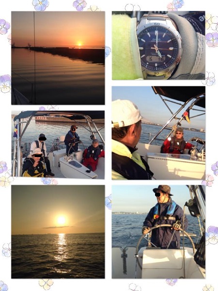5/1朝5時出航、目的地は千葉鴨川(^^)行って来ま〜〜す(^^)予定より少し早く今日の目的地鴨川に到着しました(^^)匠の星野リゾート⁇(笑)に今夜はお世話になるのでオーナー番頭さんがジャガーでマリーナまで迎えに来てくれました(笑)星野さんリゾート部屋からの眺望最高です(^^)5/2星野さんリゾート朝3時起床し番頭さん⁉ジャガーで船まで送ってもらい4時半出航(^^)大東崎沖を北進通過中です。連潮2kt・・・って事は明日は逆潮2kt・・・キャイ〜ン(・・;)逆潮2kt南進中のヨットとすれ違った。後45NM・・遠いなぁ(笑)連潮2ktは思いのほか早く到着させてくれて13:00には銚子マリーナに舫取り終わりました(^^)夢見た晴天下クルーズでのクアーズ瓶飲みして楽しい会話してたら着いたよ〜(^^)初めて見た洋上風力発電、屏風ヶ浦の絶景、銚子マリーナ職員のフレンドリーで親切な対応に感心しながら津波被害からの完全復興を願わざるを得ませんでした。明日も早朝出航だ(・・;)5/33時起床でテレビつけたら津波情報やっててビックリ(・・;)テレビ見つつ朝御飯たべて警報解除を確認して5時に出航。沿岸部は濃い霧で何にも見えましぇーん(・・;)レーダーGPSを頼りに洋上風力発電を避け沖へ出たら霧も晴れて本日の御来光。さ〜て今日も走るか(^^)鴨川星野さんリゾートに戻ります。番頭さん待っててね〜(笑)9時近くになったら霧も晴れて気温も上がってきて半袖になりその後短パンになった(^^)予想より早く鴨川着、早速星野さんリゾートの番頭さんが迎えに来てくれてリゾートに向いがてら千葉県大手のオドヤで鉄板焼食材を仕入れてリゾートへ。リゾートのフィットネス、ジャグジー、プールはパスして大浴場で潮抜いてから部屋で海を見ながら鉄板焼きで美味しいお酒で番頭さんの誕生日祝いを口実に楽しい会話で夕方をすごしました。そしてラナイから海に照る月光に心を洗いつつ早くも寝る支度してます(笑)5/4今朝も3時起床して星野さんリゾートの番頭さんにマリーナまで送ってもらい船で朝食し5時に出航しました。昼過ぎには風が上がりそうなので兎に角昼前に東京湾内に入ろうとひた走りました。大島を見ながら南下し千葉のダイヤモンドヘッド?野島崎をすぎ館山湾から内房を望む辺りで早昼を食べ三浦半島を左舷に見つつ東京湾を北上すると流石に本船が間近を通り過ぎてく(・・;)観音崎間近で此処に眠る皆んなに愛された人にクアーズを献酒しました。途中沢山の思い出話しをしました。観音崎を回り込んでアビームの8m/sオーバーで絶好の風となり8kt以上のスピードでカッ飛びあっと言う間にYBMに到着(^^)マリーナフラッグは赤旗の出航禁止が上がってました。4日間の楽しい楽しいクルージングも終わりましたが流泰丸オーナーや乗組の皆様はもとよりスパンコールオーナー星野さんリゾートには並々ならぬお世話になり心より感謝してます。随分前から思い描いていたマリンスタイルに到達した感じで楽しく心豊かな満足感で一杯です(^^)