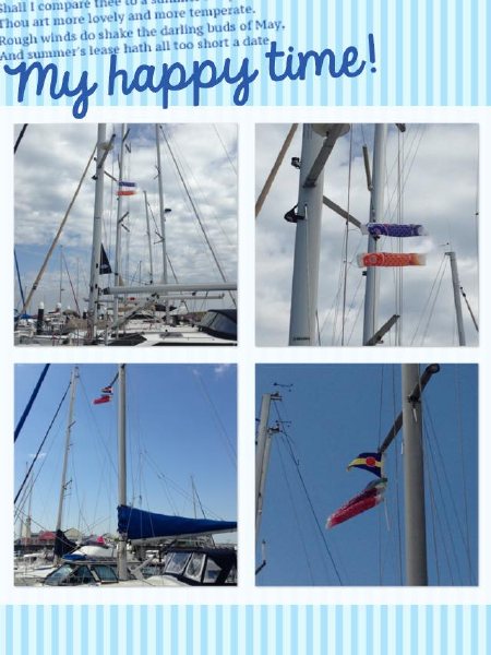 5月9日(土)朝から良い天気(^^)8時に船出して八景島へ海上散歩してきた(笑)学連ディンギー朝練してた。まだジェットコースター動いてなかった・・・キャーーって声、楽しそうで聞くの好きなんだけどなぁ(笑)自衛艦も見えたよ〜(^^)...5月10日(日)普通救命講習を受けてきました。3年前に受けたけど忘れ始めていたので再講習受けた。知り合いも大勢いて教えあって再確認できた講習でした。実践しない状況が一番良いのですがいざという時に何かしら出来ればと思います。