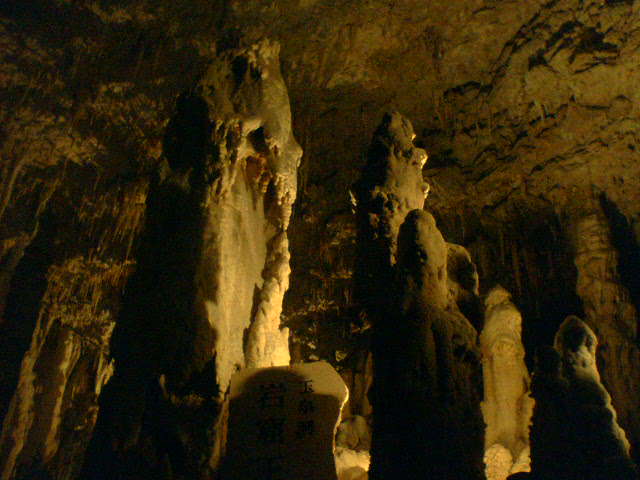 沖縄での2度目の朝を迎えた。このホテルとも今日でお別れ、今晩は那覇市内のホテルで眠る事になる。朝食を取る為、部屋を出た。昨日とは違う店(ホテル内)へ行ったが、人が並んでいる。私は根本的に並ぶ事が嫌いだ。いくら美味しい店だと言われても並んでまで食べたいとは思わない人間だ。並んで待たされれば、美味しくも感じるだろうと思ってしまう。そんな事を考える以前に並ぶなどと言う面倒な事が嫌なだけですけど……^^;仕方がないから、昨日と同じ店で朝食を取る事にする。昨日よりも部屋を出る時間が少し遅かった為なのか、こちらの店も並んでいた……。「まぁ、少しだろう……」と言う事で仕方なく列に並んだ。5分程待たされて、席へ案内された。バイキング方式の朝食なので、昨日とほぼ同じ内容の食事をした。おかゆ・梅干し・パン・スクランブルエッグ・ウィンナー(昨日はベーコン)・目玉焼き・フルーツ・オレンジジュース・エスプレッソコーヒー。コーヒーは3杯ほど飲んだ……^^食事を切り上げ、荷造りをしてチェックアウトした。今日も良い天気だ。レンタカーに乗り、那覇へ向かった。今日は「沖縄ワールド」を観光する予定だ。沖縄自動車道(高速道路)を南下し、南風原(はえばる)まで一気に走った。1時間30分程で目的地に到着した。「沖縄ワールド」は大きく分けて3つに分かれます。「玉泉洞(鍾乳洞)」「王国村」「ハブ博物公園」。今回は、「玉泉洞(鍾乳洞)」を見学し、「王国村」を見てきました。何処の鍾乳洞に行っても思うのですが、人間が見つけなければ今でも「自然の造形美」を誇っているんだろうと……。なんで、人間はこれらを壊してしまうんだろうか……。なんて事を思いながらも鍾乳洞を見学するのは好きです。こんな私みたいな人間がいるから壊されてしまうんだろうな……^^;この「玉泉洞(鍾乳洞)」は、全長が5kmもあり、日本で2番目に長いのだそうです。見学できるのはこの内の890mです。この鍾乳洞は30万年の時間を掛け、滴る水滴に混じった石灰が堆積し鍾乳石になりました。その自然の造形美は、素晴らしいものでした。鍾乳洞を抜けるとエスカレータで地上に戻ります。自然の冷気で冷やされた洞窟内から、南国の太陽にさらされると溶けてしまいそうです。南国の植物が植えられた熱帯フルーツ園では、丁度パイナップルが実っていました。あまりの暑さに一息入れようと茶屋によってジュースを飲みました。「シークヮサージュース」酸味がありサッパリした一番のお勧め。「ゴーヤジュース」苦みがありダメな人にはダメでしょうね。「パイナップルジュース」甘みがあり美味しかった。「マンゴジュース」甘くて万人受けする美味しさ。「ドラゴンフルーツ(紫)」甘みがなく以前食べた時程美味しく感じなかった。「ドリア」果物の王様と言われている。臭いは最悪だけど、甘くて美味しい。実だけラップに包まれていてスプーンで食べる様になっていたのだが、開ける前から異臭が漂いはじめ、開けた時には「ぐえっ!」って感じでした。ドリアを食べる時には恐る恐る少量を口に入れるとあまり美味しくありません。一気に沢山口に入れた方が甘く感じます。しかし、この臭いはダメな人には絶対我慢できないだろうなぁ……。そうそう、これを食べているとハエが集まってくると言われるが、本当に飛んできました。「王国村」には、ガラス工房があり、グラスの製作などが体験できます。あまりに熱そうなんで、やりませんでしたが……。琉球王国の城下町が再現されており、古い町並みが見られます。手作りのおもちゃなどを見学していると「地ビール」を発見。「ニヘデビール」と名付けられた地ビールを味わっておかなければならないと使命感に燃え、購入した。(本当は飲みたいだけです。)軽いものとコクのあるものの2種類あったが、「コクのある方で!」と瓶で購入した。コクはあるし、サッパリした飲みやすいビールでした。しかし、屋外で飲むビールは美味しいですね♪沖縄の方言で「ニヘーデービル」は「ありがとう」という意味なんだそうです。