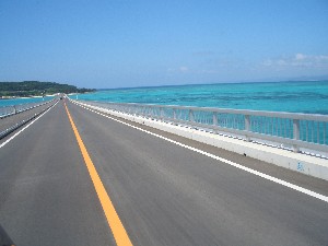 午前4時30分、目が覚めた。薄暗いホテルの部屋で煙草を一服しながら、窓の外を眺めた。空は幾分か青みがかってきたが、まだ暗い……。煙草の火を消すとベットに潜り込み、二度寝を楽しんだ。午前6時30分、快晴の一日が始まった。まずはホテルでバイキング形式の食事をした。水着を着て、水中眼鏡とシュノーケルを持って出掛ける。ホテル前にもビーチはあるのだが、沖縄の友人に教えられた「車で行ける一番綺麗な海」に行く。今年、橋が架かったばかりの「古宇利島」へ……。レンタカーを走らせ、車で約40分の道のり。途中コンビニに立ち寄り、発泡スチロールの箱(保冷用)と氷、飲み物を仕入れた。古宇利島に架かる今年出来たばかりの橋を渡るとブルーの海が何とも綺麗な色を見せて出迎えてくれた。橋のたもとのビーチには既に人が集まっていた。とりあず、島を1周回ってくる。と言っても、車で10~15分程度の小さな島なんだが……^^友達からの情報に寄れば、橋のたもとにあるビーチではなく畑の間の道を下りていけば、最高のビーチがあるらしいのだが……見つけられなかった。結局1周回った私達は、橋のたもとにあるビーチで泳ぐ事にした。砂浜でパラソルをレンタルし、ビニールのマットとゴザを敷いて荷物を置いた。顔と体に日焼け止めを塗り、マリンシューズを履いて「いざ!海へ!」行く前にビールを飲んだ♪(飲酒しながらの遊泳は危険です……^^;)砂浜は珊瑚の欠片で真っ白な砂に覆われ、体にまとわりつく事もなく痛くもない。水は透き通り、とても綺麗だ。水中眼鏡とシュノーケルを装備し、海面を漂いながら海中を眺めた。20cm程のナマコが沢山いる。海が綺麗な理由の一つだ。人も多くいたので、魚は見られないと思っていたら……体長15cm程の魚を発見!それを追って泳いでいると体長3cm程の小魚の大群を発見した。ただ、銀色の魚で色とりどりな熱帯魚ではなかったのが残念だったけど……。他の仲間達よりの一足早く砂浜に上がり、また、ビールを飲んだ。(今回のメンバーの中で酒を飲むのは私だけ……^^;)ああ~最高に綺麗な海で心の洗濯を……♪