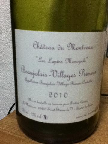 ボージョレ・ヴィラージュ・プリムール・ラ・パン[2010]/フレデッリク・コサール解禁日の前日、家で1年寝ていたヌーヴォーを開けました。大好きなシャソルネイが手がけるヌーヴォー。これも数年買い続けています。明日(今日)には2011年が来るので、飲みそびれた前年のものを抜栓したわけです。こうなったのも、2009年が良年で、この銘柄を飲んだ知人から「ヌーヴォーにしたらしっかりしすぎ」と言われ、「じゃあ、しばらく置いておこう」と思ったのがきっかけで、この2010年を入手した頃に、2009年を飲んだ記憶があります。わざわざ航空便で高い値段の付いたヌーヴォーを、寝かして飲むのはバカバカしいというのは、充分わかってはいるのですが……。ちなみに毎年買うのは、この銘柄だけ。あとはボージョレではなく、ロワールのピュズラの赤&白、ローヌのル・カノンの赤&白、自然派のいわゆるヴァン・ヌーヴォーも買い続けています。ボージョレ・ヌーヴォー、パカレやらルロワやらギイ・ブルトンやら、いろいろ買っていた時期もあったのですが、いちばん好みだったこの「うさぎ」という名の畑の付いた銘柄だけに絞られてしまいました。このヌーヴォーをフレデリック・コサールと一緒に造っているのは、ニコラ・テスタールという造り手さんなのですが、彼のボージョレがまた安くて旨いのです。ボージョレ・ヴィラーュも旨いですし、村名のブルルィもオススメです。あと、シャルドネから造るボージョレ・ブランがまた美味しいです。私はたぶん、ガメイがかなり好きなほうだと思います。よい造り手でも少し置くだけで旨みが増すし、長く寝かせてもまた美味しくなるものもあると思います。少し前にジョセフ・ドルーアンの1961年のムーラン・ナ・ヴァンを飲みましたが、実に素晴らしかったです。余韻が少し短いだけで、あとはブルゴーニュの美味しいオールド・ヴィンテージそのものでした!さて、1年寝かしたフレデリック・コサールですが、これがまた美味しかったです。ヌーヴォーらしい生の果実味感やキャンディ香はほとんどありません。最初はわずかな還元香がありましたが、しっとりとした赤系果実の香りになりました。シンプルだけどコアのある味わいで、クイクイと飲み進めてしまいました。たぶん、1年でグッと美味しくなったと思います。今日、家に来る2011年、すぐ飲んで違いを検証するか、やはり寝かせるか、悩ましいところです。