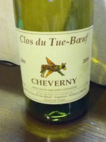 シュヴェルニィ・ルージュ[2009]/クロ・デュ・テュエ・ブフ本日は健康診断。で、日曜日の昨日は禁酒(正確に言うとビールをほんの一口)しました。で、土曜日はいいだろうということで、これを。このワインは3本目です。最近、2010を買ったので、取っておいた最後の1本を飲むことにしました。この造り手さんは、自然派好きならほとんどの方が知っていると思われる、有名どころですね。この名前のドメーヌもの以外に、ネゴスものも手広くやっています。値段もリーズナブルなので、ロワールでいちばん買う&飲むのは、ここかもしれません。在庫も10本以上あります。この自社畑のシュヴェルニィ・ルージュはガメイとピノですが、同じセパージュで畑名付きのルイヨン、ピノだけの畑名付きのクラボットとカイエールがあって、クラヴォットは「下町のロマネ・コンティ」というあだ名があるのは、ご案内の通りです。クラヴォットとカイエールはすぐ売り切れてしますのですが(何しろ「下町のロマネ・コンティ」の異名で3,000円くらいですから)、2009年は幸運にもここに書いた4種すべてを入手できたので、あとの3種はもう少し置いておくつもりです。ここのワインは、白赤ともに、1~2年置くと、グッと香味が増すと思っています。ただし繊細な自然派なので、時には臭く、美味しくなくなっていることもあったりします。ですが、上手く熟成した時の、特に赤の香りの素晴らしさは、それはそれは素敵なので、値段もリーズナブルですし、リスクをおかして寝かせる甲斐は、ある気がしますね。私にとって、白の最強デイリーワインはビアンカーラで不動です。リーズナブルで、いつ飲んでも美味しく飲める白は、これ以外には見つかっていません。赤にもそんなデイリーワインがあったらなあ、と思うのですが、なかなか見つかりません。そんな中、これは私にとって「最強デイリーワインの赤」候補なのです。この2009年は、青味のない完熟感があり、「いつ飲んでも美味しい」にかなり近い味わいだと思います。味筋は、ブルゴーニュのシャソルネイの赤と近いのではないでしょうか? ビオのほっこりした香りに、ピノのラズベリーやクランベリーにガメイのいちごの、赤系果実の混ざり合った香り。スーパー・パストゥグランといって差し支えないのではないでしょうか?その夜は、「日曜日は節制」と決めていたので、しっかり飲み、食べました。次の日が日曜日だったので、当然気が付くと眠っていました……。それではこれから、一夜漬けの健康診断に行って参ります。今晩、何を抜栓しようかは、いま悩み中です。