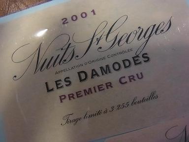 ニュイ・サン・ジョルジェ 1er Cru レ・ダモード[2001]/ドメーヌ・ドゥ・ラ・ヴージュレー三田のコート・ドールは、私がいちばん数多く食べているフレンチです。20年以上前の開店の年から、100回近く行っていると思います。といっても、大半はリーズナブルなランチです。ランチは開店から20年間は、4,500円。最初は高めのイメージでしたが、ずっと値上げしてこなかったので、だんだんリーズナブルに思えるようになりました。現在は500円アップの5,000円ですが、夜の一皿の平均の値段以下だと思うので、すごくお得だと思います。ここは昼でも夜のグランド・メニューがすべて食べられるので、このランチにその時々のスペシャリテをシェアして組み入れて、2.5皿食べたりします。私は、ここのシェフが大好きで、15年くらい前には、この方が働いていたパリのレストランに、彼の料理のルーツ探しに出かけたこともありました。今も三つ星のランブロワジーとか、今は無きヴィヴァロワとかです。彼の料理は引き算、です。そして、小説家のレイモンド・カーヴァーが同じ短編に何度も手を入れていろいろなバージョンをつくっていったように、同じ料理でも、その時の自分の気持ちを反映させて、変えていっています。たとえばスペシャリテの牛のしっぽの煮込みなども、昔はしっかりしたソースで、食べ終えるとゼラチン質で口の周りがベタベタしたものでしたが、ある時からすごい軽いソースになりました。自分の年齢や心持ちに合わせて、変えていくんですね……。今回のひさしぶりの訪問では、ごく普通のランチコースにしました。前菜の魚のスモークとデセールのスフレは、実に美味しかった!しかし、メインの鹿の煮込みは、個人的にはいま一つ、でした。さっきの話ではないですが、鹿の堅い部位を長時間煮込んでいるのですが、ややゼラチン質が足りない、感じがしました。でもいいんです。ここのお店は、点ではなく線で味わって行くフレンチだと思っているので……。すっかり長くなってしまいましたが、シェフからのサービスのグラスシャンパーニュの後に飲んだのは、ニュイ・サン・ジョルジュの1級です。ここは、たいへん感じのよいソムリエさんがいるのですが、シェフがワインを飲まない人なので、ワインをメインで考えてしまうと、リストはややさびしい内容です。知らないと思った造り手でしたが、ワイナートなどにも登場していた、大手ネゴシアン傘下の高級ドメーヌでした。10年熟成の1級で、10,000円台前半は頼みやすい値づけです。さて味わいですが、わりあいしっかり抽出して樽もしっかり効かせるタイプ、でした。高級感のある味わいですが、ニュイらしさはあまりわかりませんでした。ただハリのある果実味は、家庭料理には合わなくても、レストランの料理と合わせるのにはふさわしい味わいです。今年、仕事でお世話になった方と、御礼と来年の仕事のお願いで行ったランチですが、話もはずみ、2012年につながるランチになりました。気分が上向き、かなり酔いが回りましたが、最後まで意識はしっかりしていたと思います。
