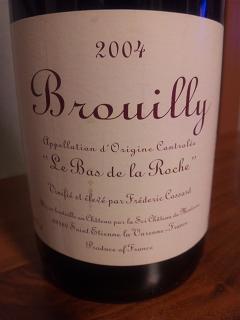 ブルイィ・ル・バ・ド・ラ・ロッシュ[2004]/フレデリック・コサールシャソルネイのフレデリック・コサール。ボーヌの造り手ですが、ボージョレにきちんと目配りしている気がします。ヌーヴォーも、ボージョレはフルーリーの造り手であるニコラ・テスタールと組んでいますし、過去もいろいろな名義で、村名ボージョレを手がけています。これは、2年前くらいでしたでしょうか、バックヴィンテージとして安く(2,000円台半ば)で出回ったもの。すぐに1本飲んで、少し寝かせようと思い、今回の抜栓に至りました。7年の瓶熟です。一口目から、味わいが柔らかく開いていました。ややドライな味わいながら、ガメイよりはピノを思わせる赤系の果実味。香りも、熟成した赤紫のべリー香で、いわゆる「いちご」は感じません。余韻がやや短いことを除けば、熟成に入り始めたピノ・ノワールとの近似性をとても感じます。しかも、その余韻を引きずらないあたりが、この味わいに非常にマッチしていて、飲んでいて過不足を思わないワインです。う~ん、好きです! もう2本くらい買っておいたほうがよかった、です。味わいとしてはきれいに軽く、スイスイと1本開けてしまいました。酔いも軽く、ちょっと陽気な気分になりますね。軽快にグラスを洗い、サッサと寝ることにしました。