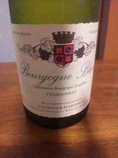 ブルゴーニュ・ブラン[2008]/ドメーヌ・イヴ・ボワイエ・マルトノACブルゴーニュ・ブラン。特に好きなのはルフレーヴ、ルーロ、そしてこのイヴ・ボワイエ・マルトノです。特にこのマルトノは、他の二つに比べて、グッと安いのが嬉しいです。この2008年も2,000円台半ばです。最近、2009年を入手したので、1年寝かせたこれを抜栓することにしました。そうそう、10月の終わりには、これの一つ上のクラスの村名ムルソーを開けています。毎ヴィンテージ思うのですが、このブルゴーニュ・ブランもよくできたムルソーに匹敵する味わいだと思います。今回は最初の一口から、だいぶ開き始めた印象です。うまく言えないのですが、熟した柑橘と、もっとファットな果実味を持ったフルーツが上手に同居している感じ。きれいなミネラルの背骨がスーッと通っているのが、何とも好ましいです!飲み進めると、さらにだんだんと開いていきます。いかん、1本空にしそうです!週の前半です。何とか8合目で踏みとどまりました。これ以上飲むと、ZZZは確実です。バキュバンしましたが、悲しいのは明日もあさっても夜は外食、なんですよね……。このワイン、前日のM.グロのオート・コートと同様、クラスとしては下位のワインなのですが、こちらにはそうとは思えない、ちょっとしたスケール感があります。よくよく飲めば、もちろん上のクラスに比べると細く、雑味もあるのでしょうが、それをあまり感じさせない造りが見事です。やはり毎ヴィンテージ追いかけたいな、と改めて思いました。