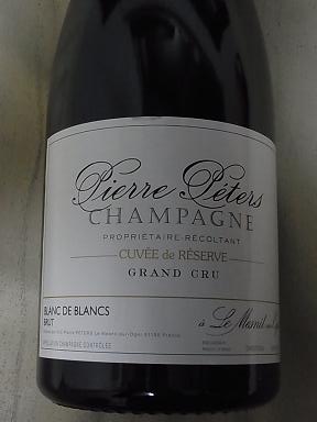 キュヴェ・ド・レゼルヴ ブリュット ブラン・ド・ブラン グラン・クリュ[NV』(マグナム)/ピエール・ペテルス溜池山王の鮨さいとうさん。世界でいちばん小さい、ミシュラン三つ星のお店だそうです。私は2008年の4月にランチで初訪問。食べた瞬間「!」でした。その時に行った友人と顔を見合わせてうなずき合い、帰るときに翌月の予約を入れました。当時は一つ星でしたが、私の鮨経験の中では、最上の部類の味わいでした。以降二つ星、三つ星と順調に星の数を増やしていきましたが、正直、今と当時の味は、まったく同レベルだと思います。私はといえば、その時以来3年と9か月、毎月1回通っています。最初は、ランチだけでしたが、最近は昼と夜を交互に行っています。最初に行った友人とともに周りに「おいしい!おいしい!」と触れ回ったら、いつしか人数が増え、今年最後の今回は、貸切になってしまいました。そういうわけで、私にとっては45回目の訪問になります。さいとうさんからも「握りだけなら、食べた貫数、お客さまの中でベスト5に入りますよ」と言われ、嬉しいような恥ずかしいような……。われながら、好きなものとは点ではなく、線で付き合っていきたい、という性格がよく出た行動パターンだなあ、とつくづく思ってしまいます。さいとうさんの素敵なところは、提供するネタが通年ほとんど変わらない、というところです。まぐろなど、冬の脂の乗ったとき、春の軽めだけど香りが出るとき、夏のさっぱりしていて、やや酸味を感じるときなど、その季節季節で、魚の味わいがいかに変わるかを、しっかり感じさせてくれます。狭いけど深いその姿勢、すっかり共感してしまい、さいとうさんも好きに違いないと思い、コート・ドールにお誘いして、一緒に食べに行ったこともありました。その後さいとうさんから「あの後、またすぐ行っちゃいました」と言われ、すごく嬉しい思いをしました。さて前置きが長くなってしまいまいたが、シャンパーニュ。ピエール・ペテルスのマグナムを持ち込ませていただきました。私は基本的に、持ち込みはしません。ワインを持ち寄るワイン会よりは、その店のワインリストからワインを選んで飲むほうが好きです。もちろん、いま売っていないようなワインや、思い入れのある古酒の場合は別ですが……。さいとうさんからは「うちは決まったワインしか置いていないので、どうぞ何でも持ってきてください」と、有難いことばをいただいているので、今回のような貸切のときだけは、持ち込みさせていただいています。シャルドネだけのブラン・ド・ブラン。やはり白い色をした魚に合います(というか、合う気がします)。まぐろなどは。ピノが多めのシャンパーニュを合わせてみたいですね。バランスよく美味しかったですが、今回はやはり、おつまみとお鮨が主役でした。冬のさいとうさんのお鮨、唸るほど美味しかったです!ピエール・ペテルスには、レ・シェティヨンというプレステージがあって、すごい評判です。飲んでみたい……。でももう買えません。懐、寂しいです……。来年以降の目標(欲望)にしておきます。この夜、日本酒とちゃんぽんしたら、カウンターでうつらうつらしてしまいました。さいとうさん、素晴らしいお鮨を前にして失礼しました!