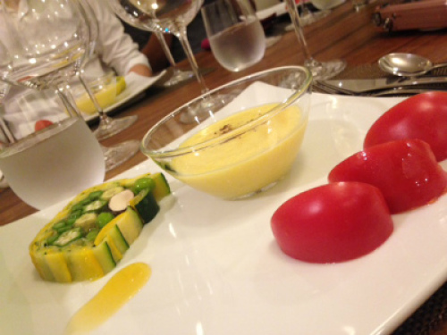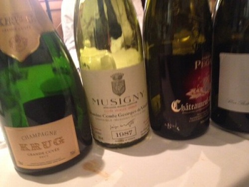 知人が自宅で定期的に開いているワイン会。ブルゴーニュの村を順に巡っているそうですが、初めて参加させていただきました。私もよく知っているあるフレンチのシェフとソムリエを自宅に来てもらって行う、贅沢な会。今回は、ヴォギエ!でした。料理も本格的でした。最初はシャンパーニュ。セロス・パジョン3種。セロスの甥だそうですが、名前は知れど初でした。スタンダードなブラン・ド・ブランと、シャルドネとピノ・ノワールが半々のヴィンテージ05と、3品種が等分で樽熟成させたフュ・ド・シェーヌ。個人的には、スタンダードがいちばん美味しく感じました。ドサージュ10gで、ややゆるめなのですが、アヴィーズのシャルドネだけなので、ダレた味わいではありません。まあセロスという名前で損も得もしている印象。味筋は違うので。そしてヴォギエ。白はブルゴーニュ・ブラン99とコレの飲み比べ。ミュジニィ・ブラン88。ヴィンテージと熟成の年月の違い以上に、樹齢の違いが分かるというのが、参加者共通の感想。ミュジニィ・ブラン。以前確か、何人かで87を飲んだ記憶があるのですが、状態が悪かったので、よくわかりませんでした。この88は、健全かつ飲み頃でした!栗のニュアンス。マロン・グラッセというよりは、渋皮煮? 味わいは、ボーヌのシャルドネとは明らかに違いますね。ある意味、熟成したシャブリのGCに近いのかもしれませんが、フリンティなニュアンスがなく、ミネラルはミネラルでも別筋な感じ。やはり世評通り、唯一無二な味わい!ほとんとグラン・クリュしか飲んでいないじゃないか?と思える、恐ろしいワイン飲みである主催者の女性は「今での白ワインでいちばん!」とのコメント。そして赤は、村名とミュジニィ。村名は2000年で、何とロットナンバーが1番!ミュジニィは82でした。ミュジニィは、古酒にはまっていた頃、かつて60~70年代を結構飲んだ記憶があります。評判の悪かった時代、数があるので、昔は有名銘柄のオールド・ヴィンテージの中では、まあ穏当な価格でした。でも当たりも少なく、堅く押し黙った味わいがしばしば。最近飲んだ09が、あっけらかんと美味しかったのにはビックリしましたが、造りが根本的に変わったのでしょうね。この82は、弱い年だからか、柔らかく熟成が進んでいて、まったく違った印象。いわゆる美味しい古酒でしたが、ミネラルの背骨は通っている印象。しかし、個人的には2000年の村名の味わいが「ツボ」でした。熟成の始まり。らしいミネラル感とやや堅さを感じる果実味、ミュジニィよりは明らかに小さい世界なのですが、ほどよい緊張感が心地よい。こういうのを飲むと、贔屓にしているユドロ・バイエなどは、「腰抜け!」と言われても仕方ないのかな、と思ってしまいます(まあ、その腰抜け感が大好きなのですが……)。ちなみにこの他に余興として、ブラインドで白赤が1本ずつ出ました。ドミニク・ラフォンのブルゴーニュ・ブランとボーヌ1erセプノ。どちらも11でしたが、さっぱりわかりませんでした。再飲が許されるなら、セロス・パジョンのブラン・ド・ブランを1杯飲んでから、シャンボール村名00をボトルで、最後の1杯にミュジニィ・ブラン88をゆっくりと、でしょうか。