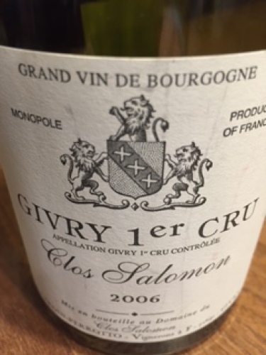 ジヴリー 1er Cru クロ・ソロモン[2006]/ドメーヌ・デュ・クロ・ソロモンモノポールの畑名とドメーヌ名は、一緒であってはならないという法律があるそうです。ヴォルネイの1級畑のプスドールが、ドメーヌ名と同じだという理由でブスドールに改名したのは、一部では有名な話ですが、このクロ・ソロモンは、ロマネ・コンティと同じく、それを例外的に許されているそう。理由は???この赤ワイン、数年前にワインジャーナリストの葉山孝太郎さんが一緒だった何かの機会で、葉山さんがフランスであれこれ試飲して回った直後で、知らなかったワインの中で美味しくて印象に残った銘柄として挙げていたもの。すぐさま2本購入して、1本は直後に飲んだのですが、酸味基調でまだまだという味わいだったので、もう1本を昨夜まで置いておいた次第です。改めてネットで見てみると、土壌の関係で赤にして、柑橘系の酸味を纏うのが特徴とのこと。しかしながら瓶熟で、相対的に酸はやや引っ込み、こなれたタンニンとサクロやクランベリー系の赤系の果実味が、穏やかな甘みを伴って広がっていました。ジョブロもそうですが、タンニンがジブリーにしては綺麗で、よく躾けられている印象。もう少し熟成させたら、また一段と美味しくなりそうな味わいでした。