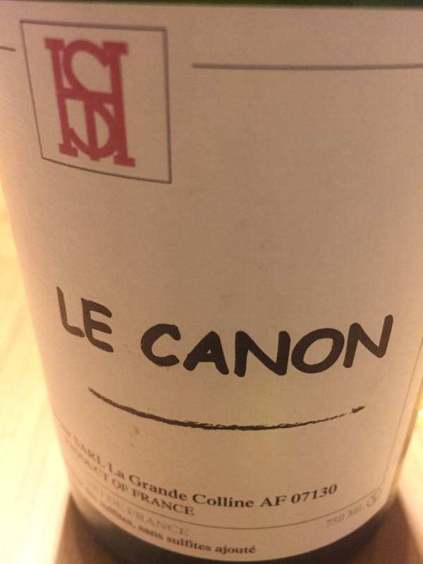 ル・カノン・シャルドネ[2013]/ラ・グランド・コリーヌ みなさまにとって、よき年、よき日々、よきワインでありますように! 年越しはこのワインを飲みながら、0:00を待って、うきうきの福袋争奪に算入。泡ばかり8本、泡沫(ウタカタ)な始まりになってしまいました。 噂には聞いていましたが、私は昨年から参加、蒸発の早さ、スゴイものがありますね。 さて、このローヌのシャルドネ、以前飲んだ時は残糖と微発泡で、半甘口のペティアンのようでしたが(そういえば王冠留めでした)、これはシャブリもびっくりの鋭い酸、糖を喰い切った極辛口でした。 旨いは旨いのですが、かなり肩透かし。自然派は、こういうこと、時々ありますね。 予想外、予定外に慌てない、新しい年にしていきたいと思います^_^