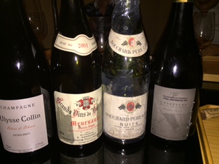 先週末、3人で。一次会が焼き鳥&串カツ、三次会はラーメン。で、その間の二次会が持ち寄りワイン会という珍しい趣向でしたが、コレがなかなか面白かったです。一次はビール&ハイボール、三次は再びハイボール。二次会では泡1、赤2。泡は、持参のYさんが2本飲んで、「正規の1本目が超絶に旨くて、並行の2本目がフツーで、今回は正規を持って来ました」という、ゴッセのセレブリス02。飲んだ本人の感想は、「1本目と2本目の中間?」。ノンマロにしては柔らかい酒質。しかしながら酸はシャープなので、それだとわかるかも?という味わい。最後、温度が室温に近づいたらグッと開いて、享楽&妖艶な味わいになりました。赤は、「気軽」がテーマだったら、ブルゴーニュ・ルージュが2本になりました。私が持参したデュガの01の、まあ堅いこと! エキスの強さはクラス超えですが、香りも味わいも閉じていて、ほかの2人からは「15年熟成とは思えない」と。確かに、このガチガチは最新ヴィンテージのよう。しかし、このワイン、私は最近入手したのですが、リリース仕立ての時にも買った記憶があり、それから10年以上経ったバックヴィンテージでしたが、ほど同価格だったように思います。10年以上前は確か、ルーミエのACブルゴーニュは、デュガの2/3くらいの値段だったと思いますが、あちらは3倍ほどに跳ね上がったのに、価格ほぼ据え置き。いまのデュガの日本での不人気がよくわかります。もう1本のトルショーの05、堅いと評判のラストヴィンテージですが、それでもデュガよりは開いていたように思えました。特にアフターのじんわりとした甘みは救いで^^、もちろん04のようなトルショー節はありませんが、それでもデュガよりは愛想よく思えて、愉しませてもらえました。