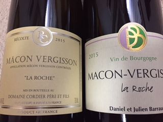 マコン・ヴェルジュソン・ラ・ロシェ[2015]/ドメーヌ・ダニエル・エ・ジュリアン・バローマコン・ヴェルジュソン・ラ・ロシェ[2015]/ドメーヌ・コルディエついこの間FBで、ドメーヌ・コルディエの当主、クリストフ・コルディエさんから友達申請が来ました。もちろん会ったこと、ありません。友達の友達で「何かコイツ、ワイン好きそう」と思われたからだと思います^^そういえばひさしくコルディエのワインを飲んでいないなあと思い、とりあえず今回のワインとプイイ・フイッセV.V.のバックヴィンテージを1本ずつ買いました。折しも毎年買っているバローの同銘柄の最新ヴィンテージもリリースされていたので、同時に飲み比べてみることにしました。バローのこの銘柄は、私にとってマコネ事始めのようなワインで、2015年で買い続けて14ヴィンテージ目になります。けっこう違っていました。そもそも度数がバローは13%、コルディエは14%。暑いヴィンテージの恩恵を活かそうとしたのがコルディエ、少し抑制的に造ろうとしたのがバローかもしれません。濃密系で知られるコルディエのほうは、最初から外交的で蜜のニュアンスしっかり。ボングランとも近しい方向性で、熟度しっかり。しっかり絞った感のある軽いエグミもありますが、良年ゆえか、決して悪い印象ではありません。対するバロー、昔のほうがたっぷりした味わいだったような気がしますが、酸を残して早めに摘んだ?的な味わい。ヴェルジェもそうですが、マコネ特有のハーバルなニュアンスがありますが、決して青臭くないので、よきアクセント。まあしかしコルディエにしても、畑名が示しているようにしっかりとしたミネラル感があるので、ダレた印象はありません。最初だけやや還元的に思えたバローも、かなり時間が経つと酒質が厚みを増して、コルディエの味わいにやや近づいてきました。さすがに飲みきれなかったので、残りを少しずつ飲んで、変化を見てみようと思います。