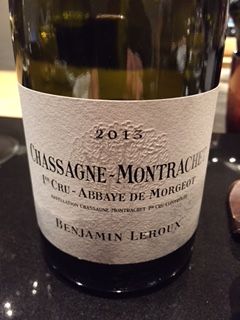 ここで、いったん白に(確か) 。バンジャマン・ルルーのアベイ・ド・モルジョの13年 。きれいなミネラル感で、ムルソーかと思いました。シャサーニュらしさをとれた人もいました。バンジャマンは、白が安定的にいいですね。