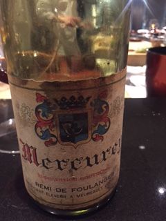 赤は1種類だけ。先週に引き続き、男子会のY田さんが、古酒。1種類と書いたのは、瓶差がありそうと、同じものを2本。知らない ネゴスのメルキュレ71 。かなり進んではいましたが、良年の果実の甘さは、しっかり残っていました。液面低めのほうが、なぜかミネラル感がありました。