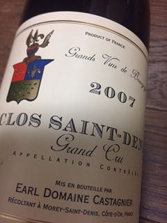 3本目、私が持参した カスタニエのクロ・サン・ドニ2007年 。ひさびさにこのアペラシオンが飲んでみたくて、買ったワイン。