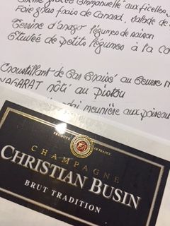 昼なので、通しでシャンパーニュを1本。 クリスチャン・ブサン 、初めて飲む造り手です。