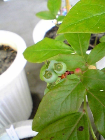 こんばんは~♪今日の広島は変な天気でした(^^;午前中はゆったりとしていたのでついつい農園のほうへ・・・。するとブルーベリーの実が色づいているではありませんか~おまけに1年ものの苗のほうが早かったりして。。。ちなみに今回収穫したのはブルーレイという品種(^^)b品種でかなり収穫時期が違うみたいですね~ 今回2個収穫しました。早速期待して食べてみると・・・、すっぱ~いまだ少し早かったのか???付け根のほうが若干まだ赤みが残っていたので多少早かったのかも欲張りすぎてはいけないってことですね(^^;しかし、初物を食べるってなぜか嬉しいですね♪
