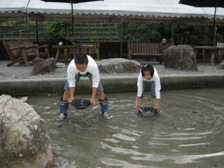 おはようございます(^^)v先週の火曜日子供達は秋休みだったので・・・(今の小学校は2学期制になっていて夏休みが2日程度短縮されて秋休みと言う形で連休になってます)・・・日帰り家族旅行に出かけました。7月に車をエコ換えで買い替え今回ETCも付けて(若干乗り遅れてますが(^^:))山口県岩国市までGO!まず最初に向かったのは美川ムーバレーここではまず方位磁石と暗号を解く説明カードを渡されて地底探検!!!お兄ちゃんはがっつり楽しみましたが、妹ちゃんは途中の音が怖かったらしく早く出たいモード(^^;、しかしすべての謎をクリアーしてクリスタルスカルの種類を見つけ洞窟から出てきました。。。この間40分結構楽しめました。色々なコースがあるので子供達だけでグループで競争させても楽しそうでした。洞窟から出てくると、砂金堀の体験ができる池があり、子供達は砂金探しに熱中~!!!妹ちゃんはいきなりヒットした砂金に大喜びで、30分間休むことなく探し続けました。しっかり体を動かしたのですっかりお腹がすいたので、道を挟んで向かい側に温泉ホテルがあり、そこの食事処へ・・・こういう観光地のお食事処は高いイメージがあるのでどうかな~?と思いながら・・・ピラミットカレーとラ・ムー丼と鳥の唐揚げ定食と天ぷらうどんを注文!値段はありきたりの800円前後。食事がついてびっくり!!!良心的です!!!鳥の唐揚げ定食は子供では食べきれないくらいあります。ピラミットカレーはご飯がピラミットの形なだけでしょうしょうがっくりぎみのお兄ちゃんでしたがラ・ムー丼は美味しいです。ラ・ムー丼は今回の一押しですよ。(写真を撮ってないのが残念(^^;))続いて向かったのは錦帯橋~!!ここは説明が要らないくらい有名なスポット!!!この橋を渡るのは小学校以来かな???橋を渡りきると名物ソフトクリーム!!!お兄ちゃんの頼んだ苺大福ソフトは超美味しかったですよ(^^)b甘いものを食べたら岩国城に行って天守閣で偉そうにして・・・(^^;降りてきたら白蛇をみてお守りを買いました。白蛇ってすごくかわいいです(^^)bそしてこの旅の締めくくりはなんといっても山賊このあたりに着たら定番のお店!!!山賊焼きと山賊おにぎりは必ず!!頼まないと損ですよ!!!今回は七輪でお肉を焼くメニューも頼んでお兄ちゃんも妹ちゃんも大満足!!!こんな旅行は久々だったので後をひく楽しさでした(^^)v朝8:30に東広島を出て夜の8:30に自宅に到着のベストタイム!!!もう少し子供が大きくなったら一緒に遊んでくれなくなりそうなので、今のうちにしっかり遊んでもらっとこ~(^^;v