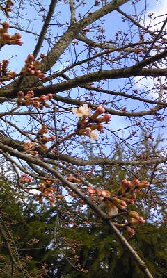 こんばんは~♪わがコースのさくらやっと開花しました~(^^)v昨日まではこんな感じの蕾でしたが・・・、本日の陽気に誘われるように開花~♪やっぱり桜は良いですね(^^)b
