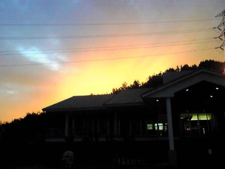 ご無沙汰しております。皆さんお忘れではないでしょうか???今年の夏は以上に暑かった広島は私、館内にて熱中症になりかけちゃいましたしかし、先日は十年ぶりくらいに連休をとり嫁の実家の四万十川の中流まで行って楽しいおもいもいたしました。いろいろ、ご無沙汰中のお話もあるのですが、久々なので今年の暑い夏の一番の贈り物を皆さんにも携帯の画像なのでいまいちかも知れませんが、今年の夕日は本当に格別でした。