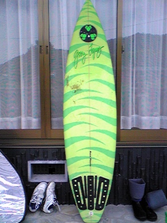 こんばんは~♪明日の広島は雨がやばそう・・・ゴルフどころでは・・・。ところで先日実家に帰って倉庫を整理していると、学生時代のお宝が(^^)vジェリーロペスの板でYUシェイプです。長さが6’3”で厚さが6だったと思います。初心者向きです(^^;よく中村市(今は四万十市)や室戸のほうに行ったものです。私はオークションとかはしていないので、出品は出来ませんが、いる方がいらしたらおっしゃってくださいね(^^)bポーターとショートジョンのウェットスーツ(オニール)もつけますよ。って・・・、もう骨董品になっちゃうので誰もいりませんよね~(^^;よき思い出で大事にしまっておこう明日は、うちの会社の広場でダイハツのチャレンジカップが開催されます。雨で路面が滑るのでアドレナリンでまくりのチャレンジになるんでしょうね~(^^;参加者の皆さん事故だけには気をつけて頑張ってくださいね♪