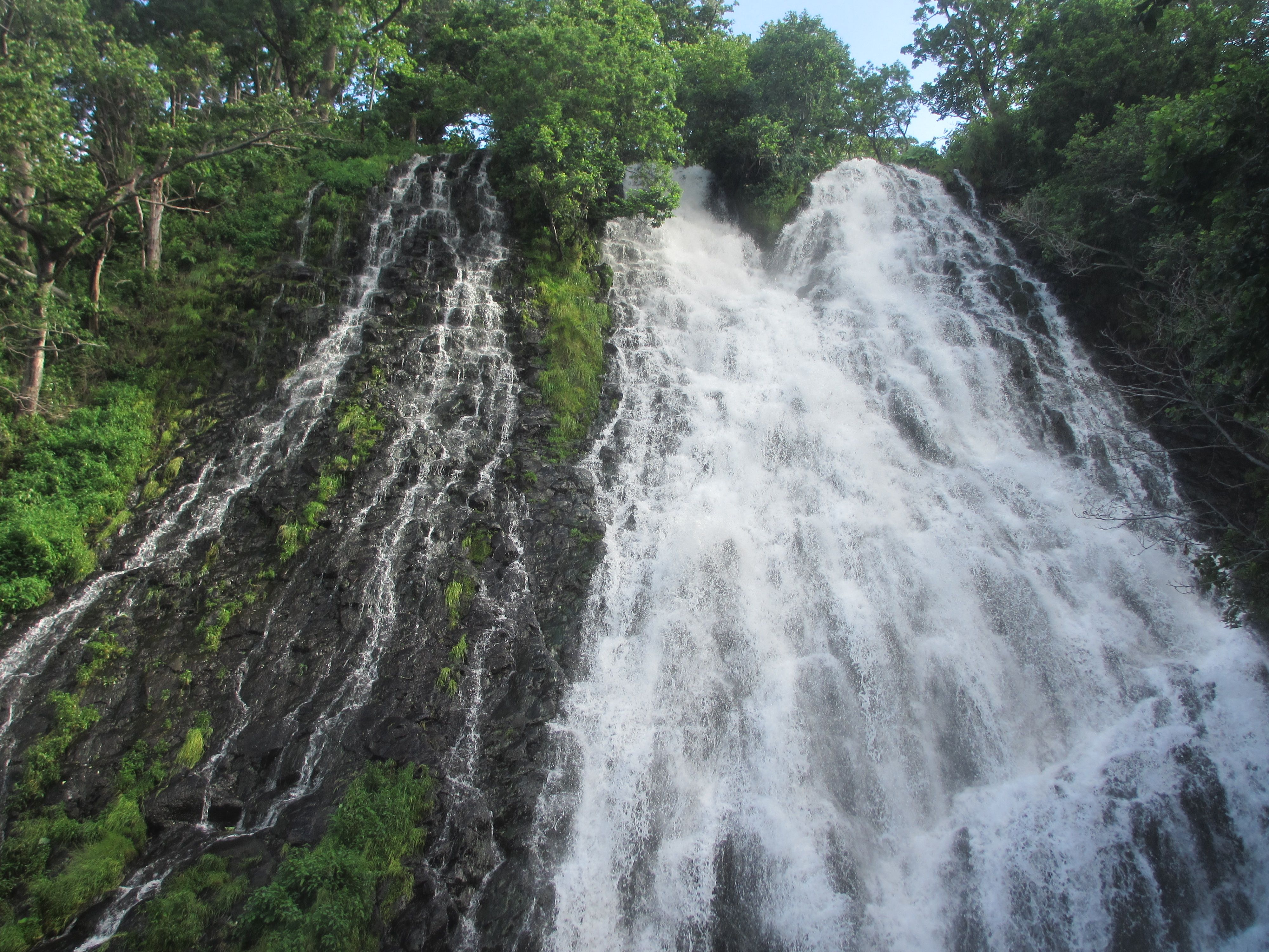 オシンコシンの滝空と岩透き通るウトロの海※2018年7月15~16日撮影いるかホテル