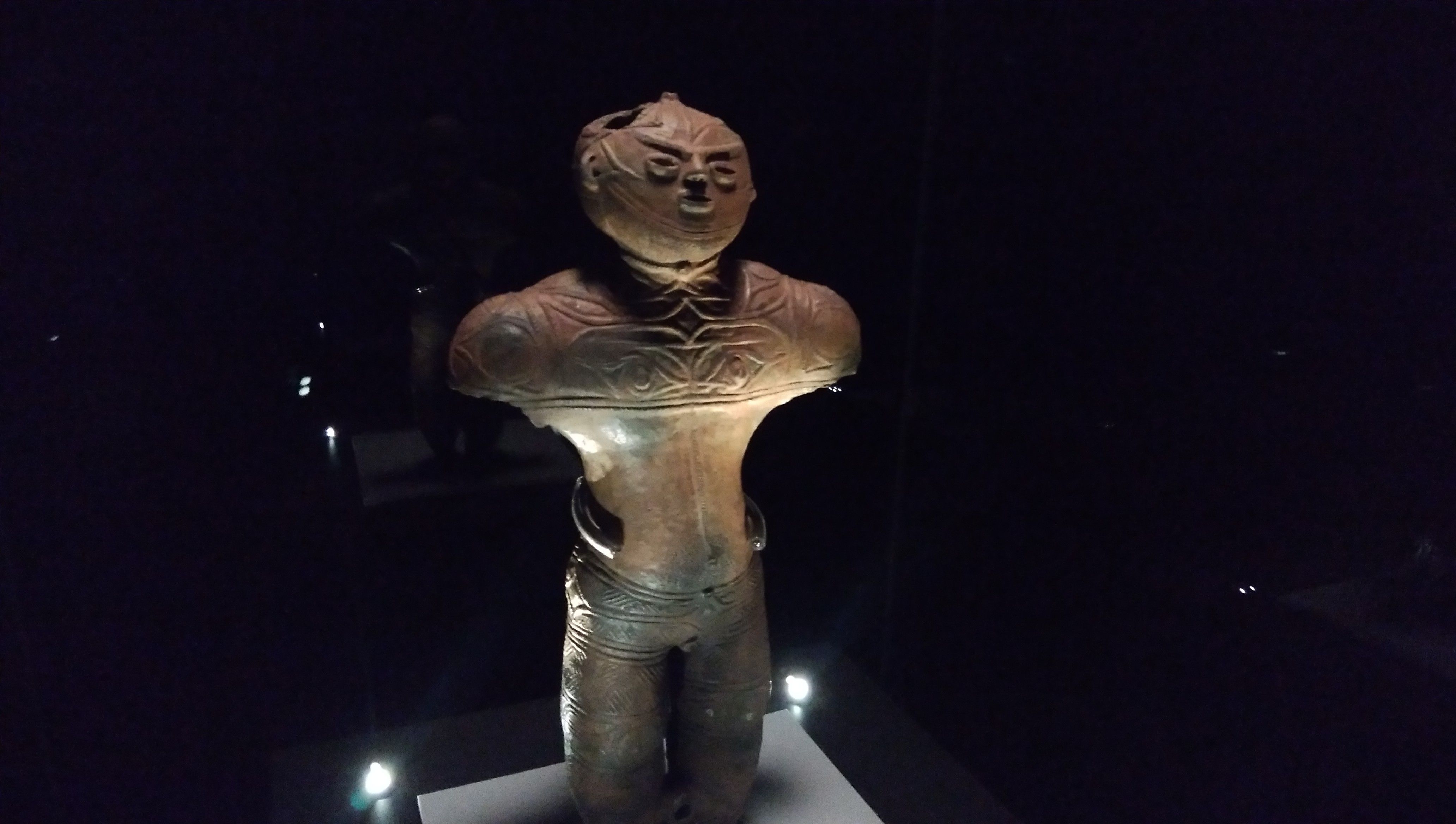 続いての道の駅は、旧・南茅部町にある「縄文ロマン 南かやべ」。はい、コレが北海道で唯一の国宝「中空土偶」…、愛称はカックウです♪(笑)つくりが細かいですねぇ…。ちなみに、縄文前期の土偶は女性をかたどったものが多いんですが、後期になってくると両性具有的になってくるんですよ♪ ←受け売りさて、息子は縄文土器の復元に挑戦!!…オマエさん、意外にこういう才能あるのねぇ(笑)将来は、研究者に向いてるかも?? ←親バカ直立する土偶【北海道著保内野出土】【縄文時代後期】【送料無料】【送料込】レプリカで~す♪(笑)