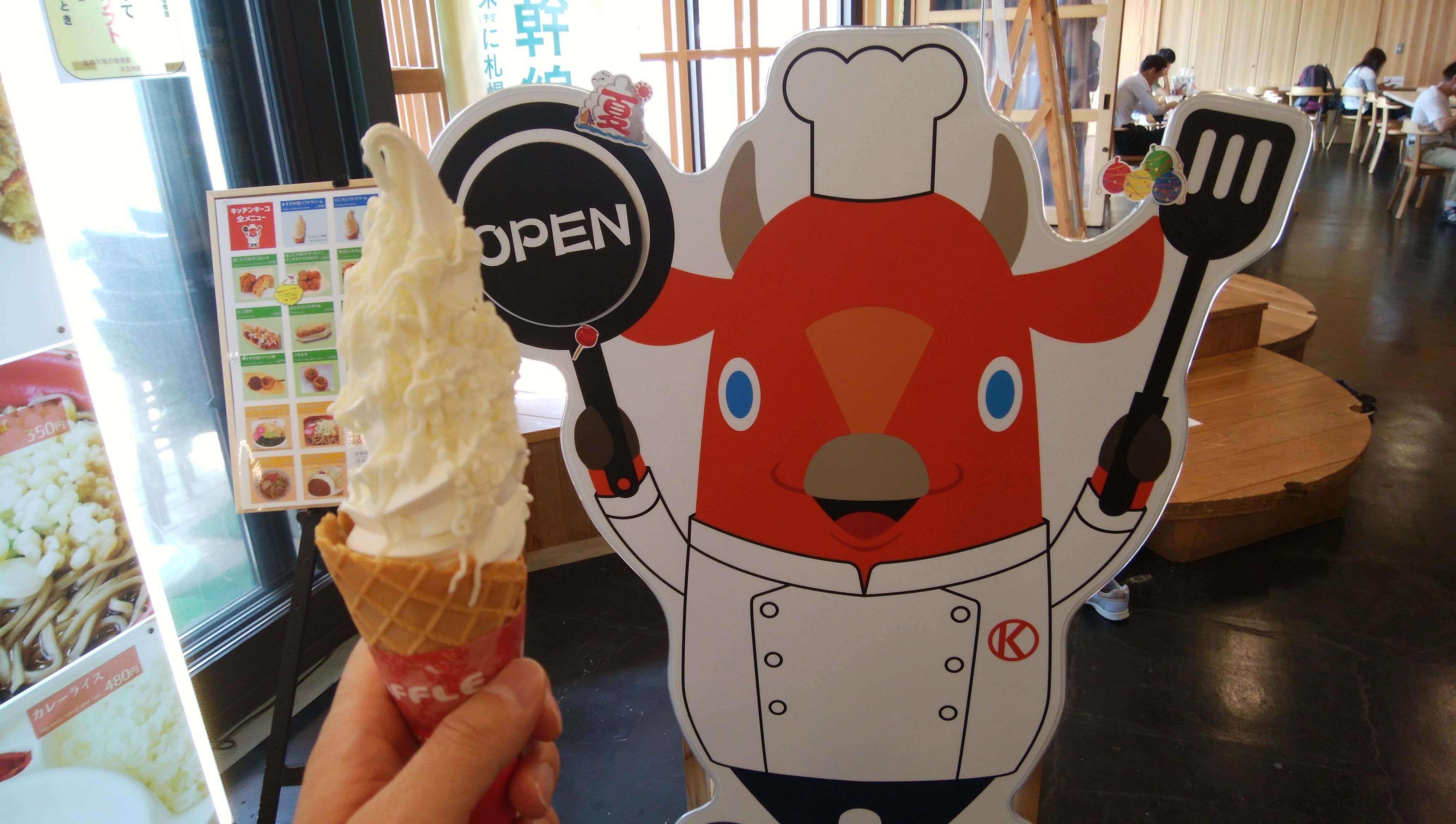はい、朝風呂して、コンビニで朝飯を買ってきて食べ、七時半にチェックアウト♪ローソンスタンプラリーをしながら、一路、鵡川の道の駅へ!鵡川と言えば、特産のシシャモ…、じゃなくて、コレはししゃもねこ(笑)今、人気爆発中…、なのか??で、去年、大地震の被害があった厚真町の生々しい崖崩れの傷跡を見ながら、安平町に出来た新しい道の駅へ!!いやぁ、カッコいいよね、ホント!!実は、亡くなった自分の祖父が国鉄の機関士だったんで、コレを動かしていたのかも??…なんて思ったりして(笑)息子も夢中で写真を撮ったり、解説を読んだりしていましたよ♪さて、旅の最後は三笠イオンに向かいましょうか!!実はある方と、待ち合わせをしているんでね(笑)モッツァレラチーズはやきた-GX旧・早来町と旧・追分町が合併して安平町になりました!