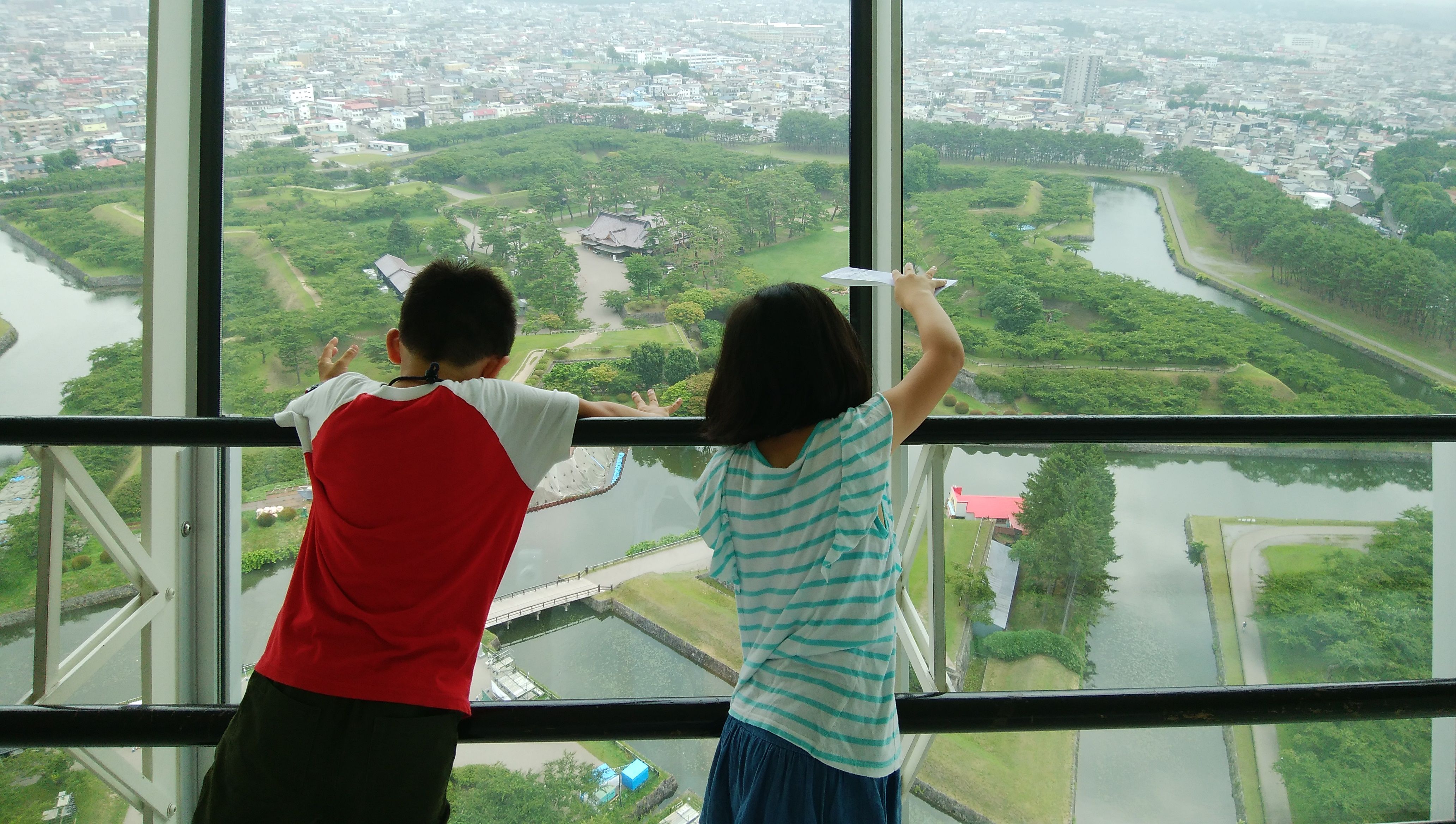 さて、二日目ですが、ホテルから徒歩10分弱で、やって来ました五稜郭!(笑)星形の五稜郭に、兄妹でダイブ!!(笑)ちなみに、それぞれの先端に大砲を備え付けて、360度からの攻撃に備えるために、この形なんですよ♪ ←受け売りで、展望台から降りてきて、エレベーターの扉が開くとコレがあるのは、戦略か?(笑)う~ん、ミルキッシモのジェラード美味しい♪五稜郭氷(きんつば)5個入るろ剣のパイも売ってました… ←また買いそびれた