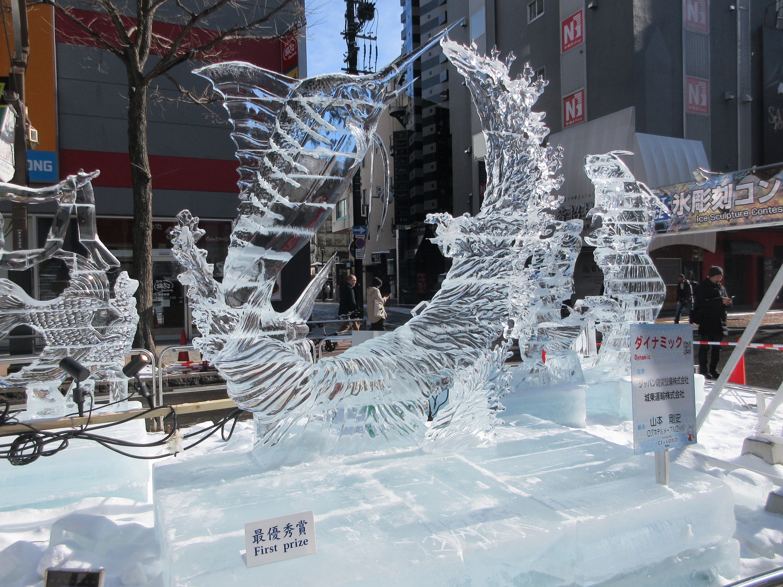 こちら、最優秀賞のカジキかな? プラスの気温と日差しで、壊れてしまった氷像もありました…こちらが、優秀賞です。 ん~、審査員の好みなのか、何か飛び跳ねる魚の氷像が多かったですねで、最後はやっぱり「すしざんまい」提供の魚介の氷漬けでしょう(笑) コレがなっくっちゃねサンヨー食品 サッポロ一番 すしざんまいマグロだし醤油ラーメン×12個(1月下旬頃入荷予定)残酷だと、某愛護団体から、苦情があったこともあるようですが… 何でもやり辛い世の中ですね【注】写真は2月8日のものです。