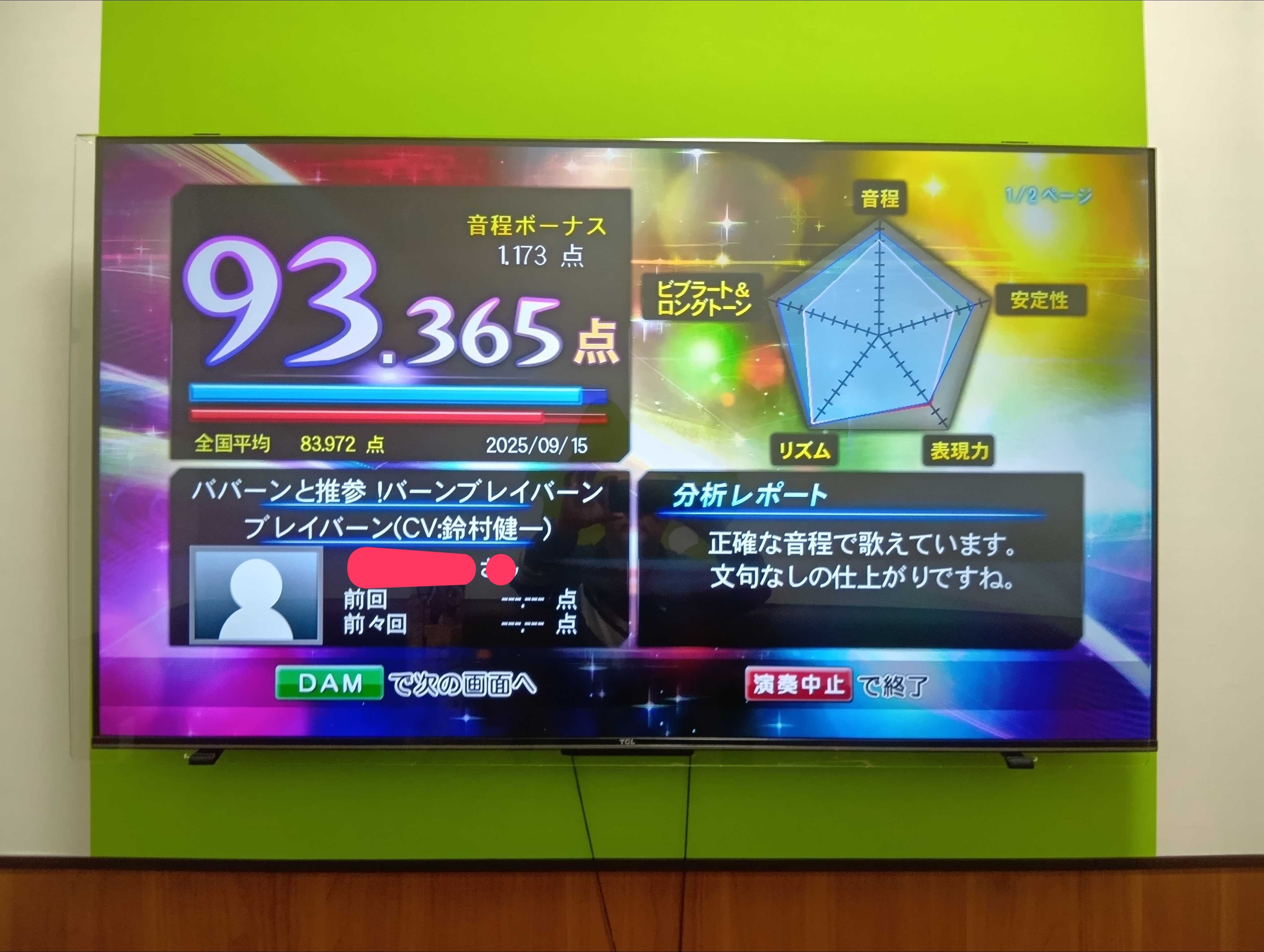 いやね、食べマルシェ混んでるから、って娘に行くの断られてね(苦笑)仕方なく、一人カラオケしてきましたよ、ハイ…で、1時間に何回90点以上をとれるかチャレンジしてきましたぁ♪まずは、アニソンから、バーンブレイバーンで、声出し。 文句なしが(笑)続いて、ひろみ郷のエキゾチ~ック・ジャパ~ン!!(笑) これ、得意だわ…と来たら、ジュリーでしょ(笑) ア~アア~♪薬屋のひとりごとから、緑黄色社会の花になって。 ボーナスでギリ90点(苦笑)さて、そろそろ持ち歌を(笑) 中森明菜は十八番です♪ 威厳って…水木一郎のアニキを偲んで、コンバトラーVを… やべ、懐メロとアニソンしか歌っとらん特撮も歌わねば(笑) ってコトで、幻の東映版スパイダーマンを。締めは、ウチの嫁さんが好きなGLAYで(笑)…はい、12曲中、8曲で90点以上をとることができましたぁ♪って、アニソン、特撮、懐メロばっかりやね(苦笑)1200曲 2本 家庭用カラオケ カラオケセット カラオケ 家庭用 テレビ おすすめ マイク 機器 機種 セット カラオケマイク セット 家庭 用 曲 機械 自宅カラオケ 採点 自宅 で テレビ TV 接続 高齢 者 自宅 お家カラオケ オンステージウチに防音室とカラオケセットが欲しい…