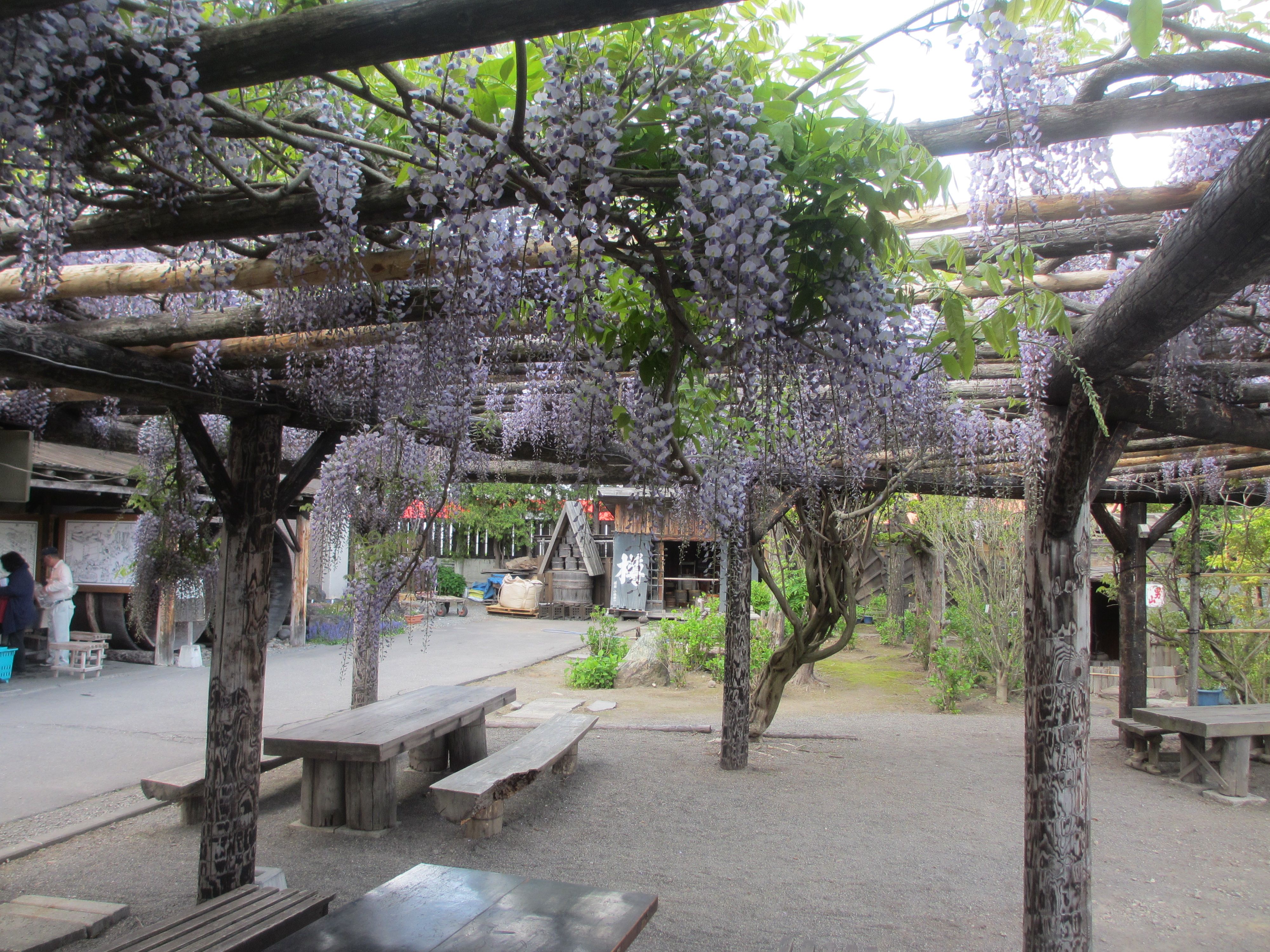 この見事な藤棚の他に、つつじ、菖蒲など、四季折々の花が咲き誇る庭は、一度は見る価値アリ!